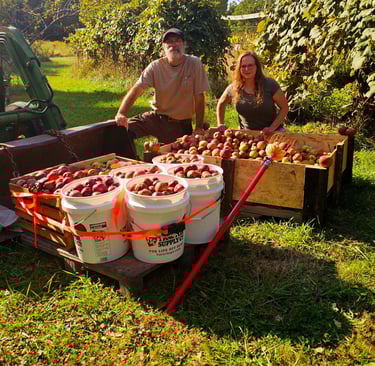 What a harvest is right! Even with our current drought, the orchard still managed to produce about eight bushels of apples. We are ecstatic!